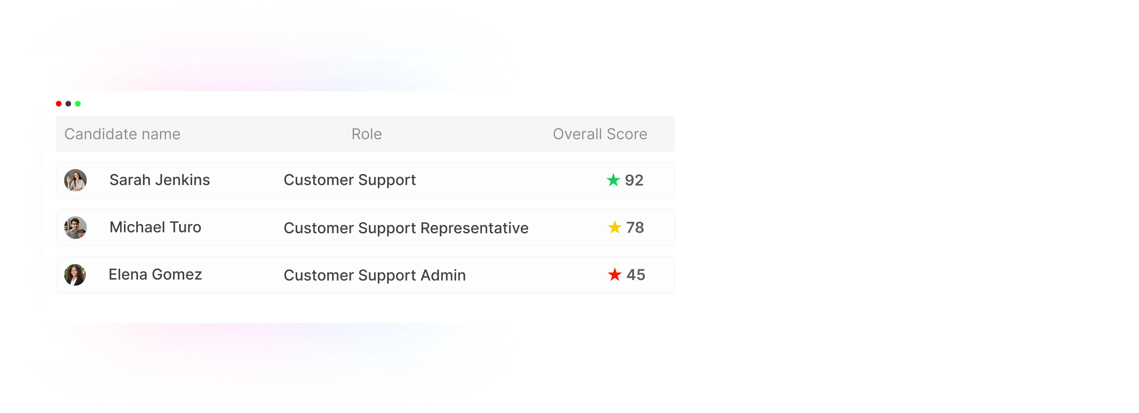 Review top candidates easily with a unified view that eliminates fragmented data.