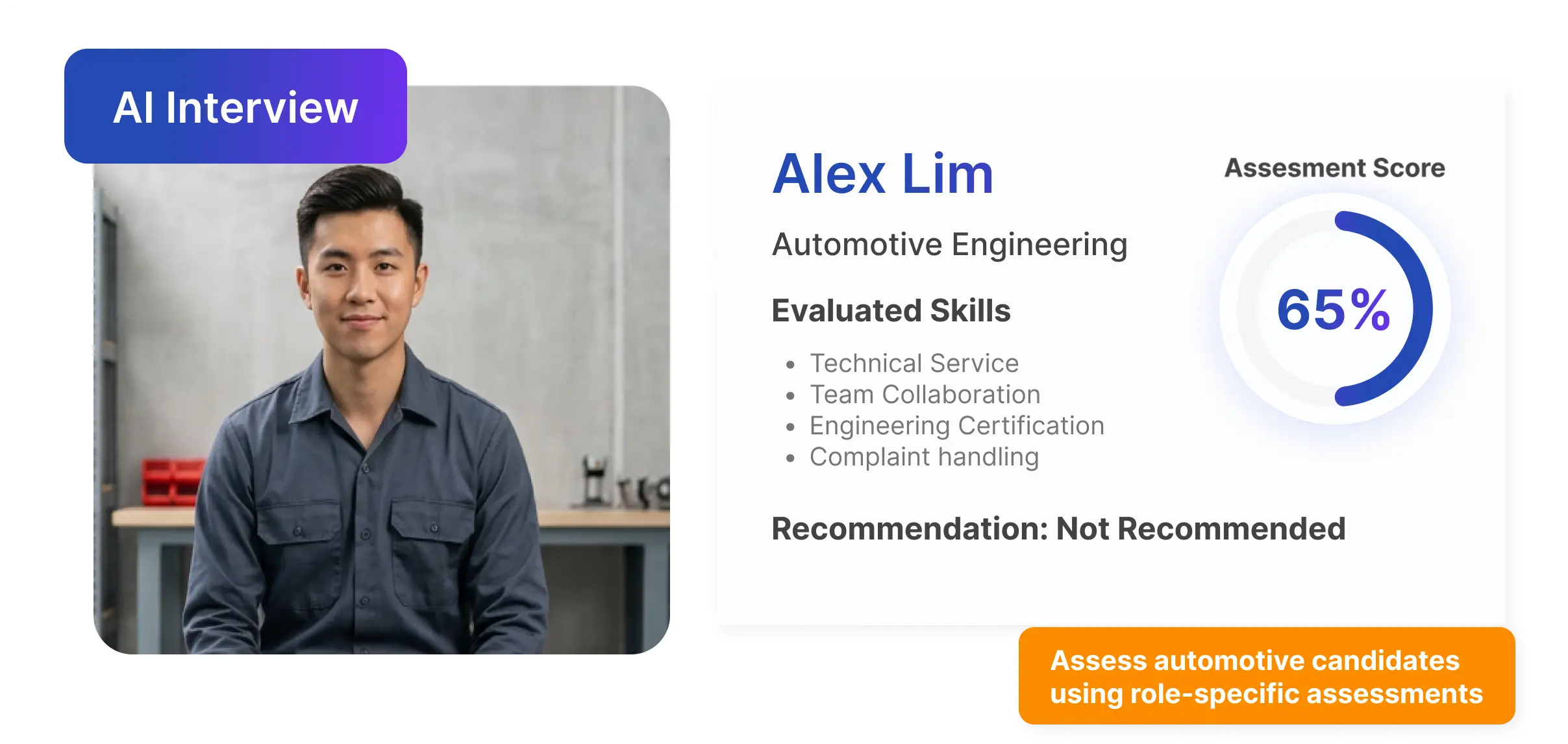 Automotive candidates can be reviewed against the same role-specific criteria.