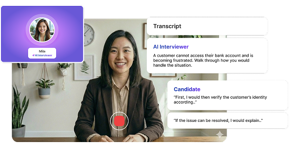 Replace repetitive first-round screening for branch staff, contact centers, and junior support roles.