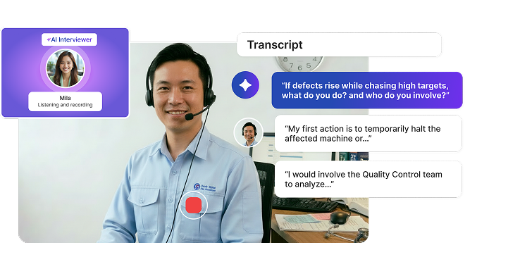 Standardise early screening across plants and shifts, and give hiring managers structured outputs for the best decision.