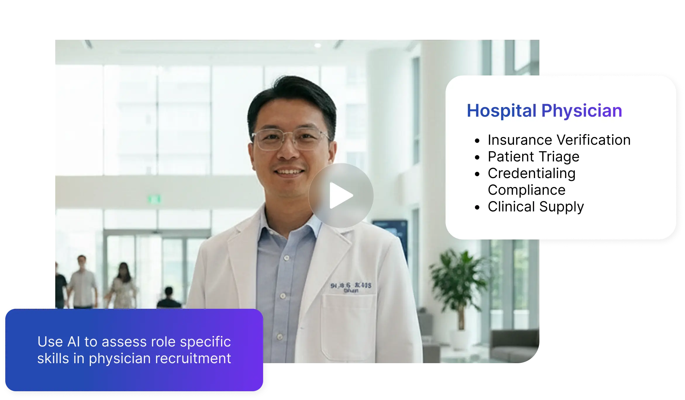 Built for physician hiring that needs faster screening for practice-setting fit, patient communication, and first-round judgment before panel interviews.