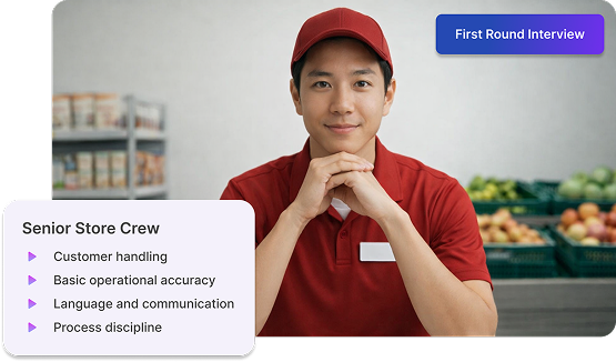 It fits repeatable frontline roles where you hire in volume across outlets, like frontliner, store crew, cashier, customer service, and admin support. It is also useful for seasonal spikes and new outlet openings where speed and consistency matter.