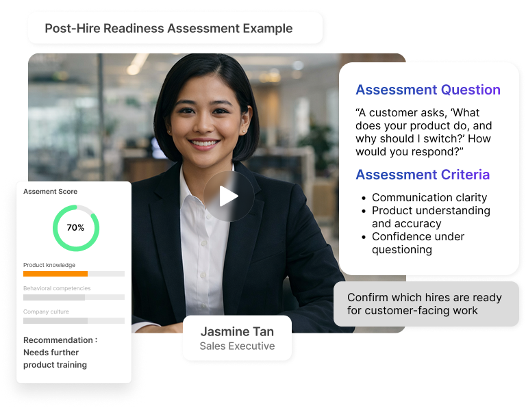 Yes. Teams use it before hiring to shortlist qualified candidates, and after hiring to check whether new sales hires are ready to sell. The same assessment approach can be applied at both stages with different questions.