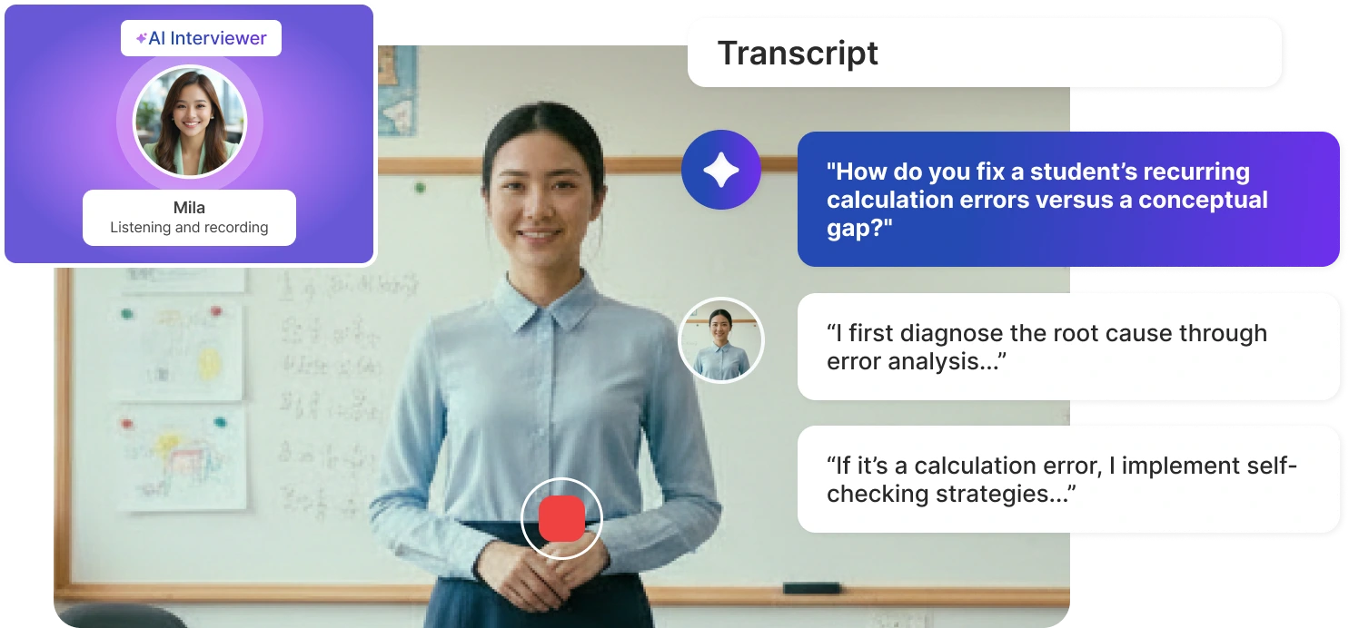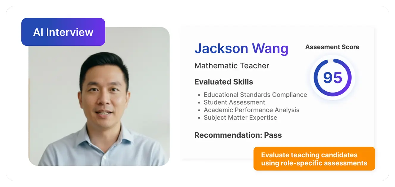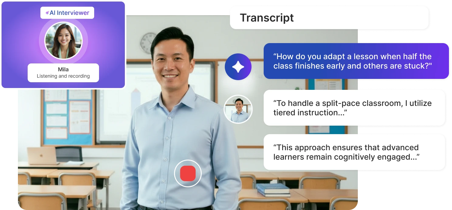 They get a structured summary of the candidate's scores and responses, allowing them to skip basic screening and focus on classroom-specific skills.