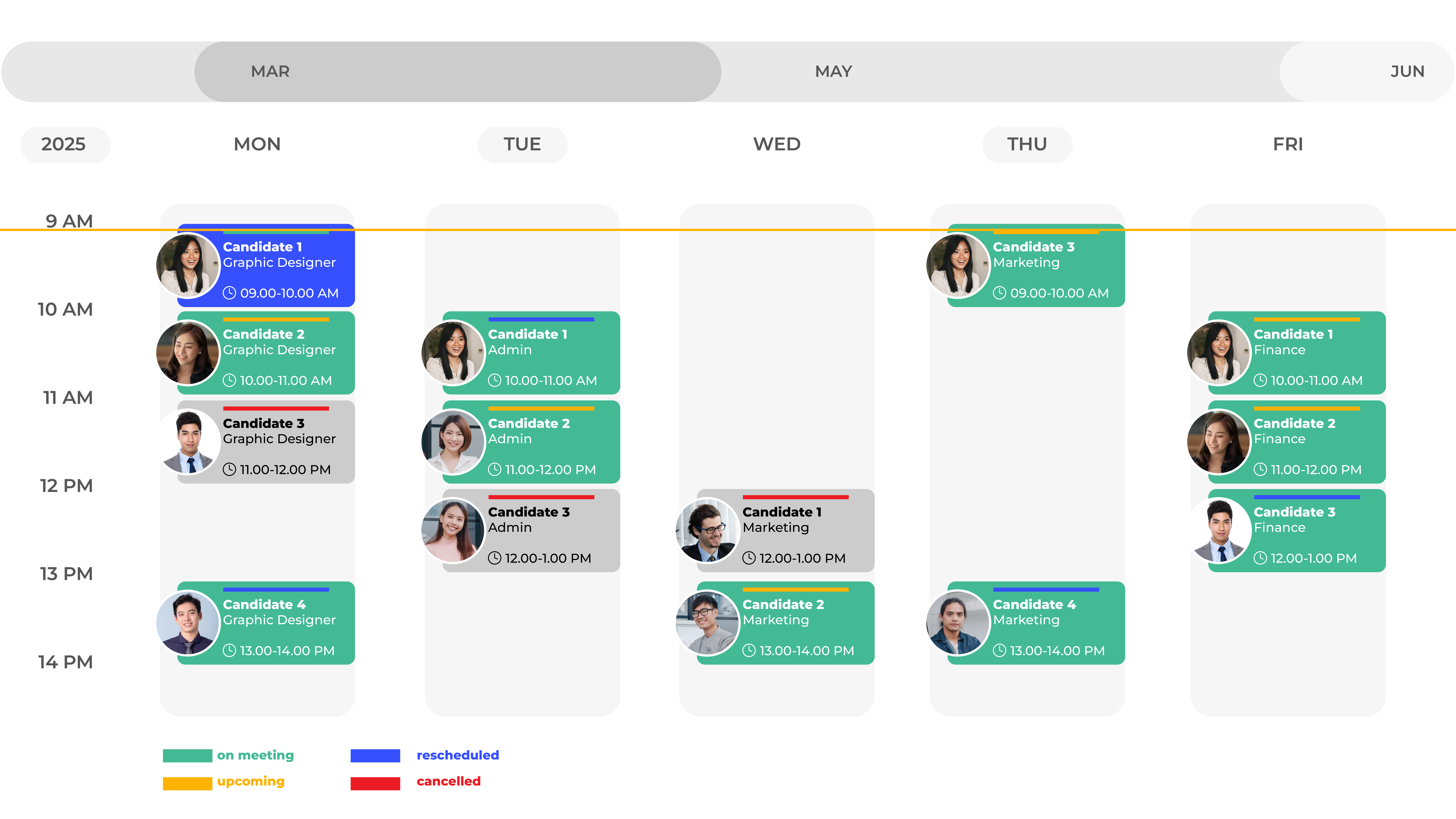 Send invites with one click. Candidates complete structured, role-specific video interviews that are scored objectively and consistently.