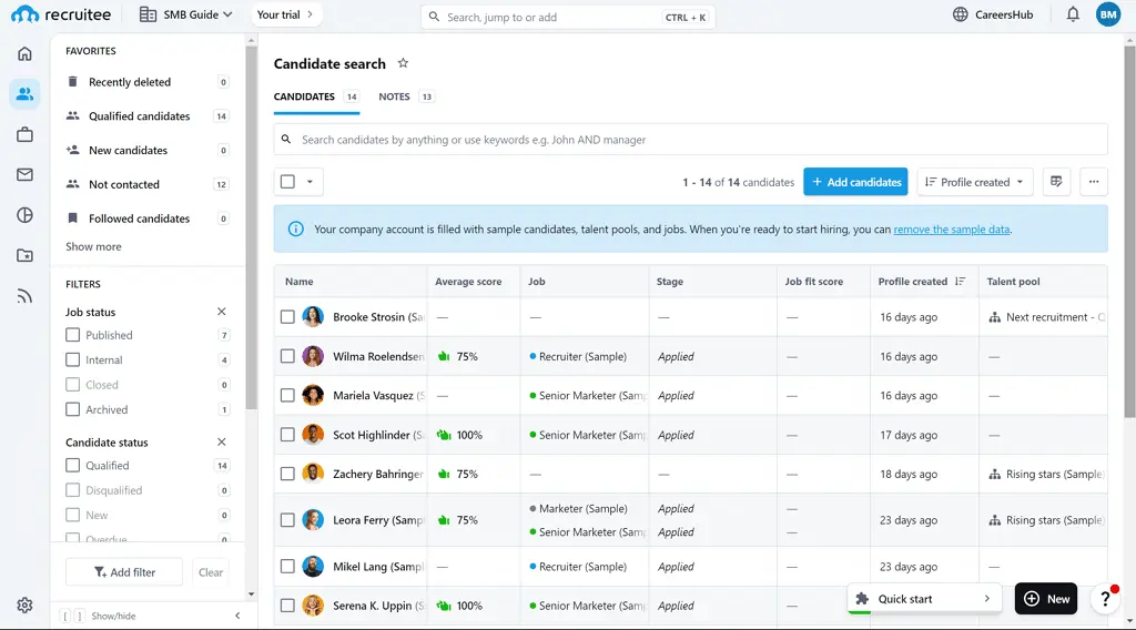 Best For: Recruitee is best for small to mid-sized companies with teams of about 25 to 500 employees that want a collaborative hiring platform.