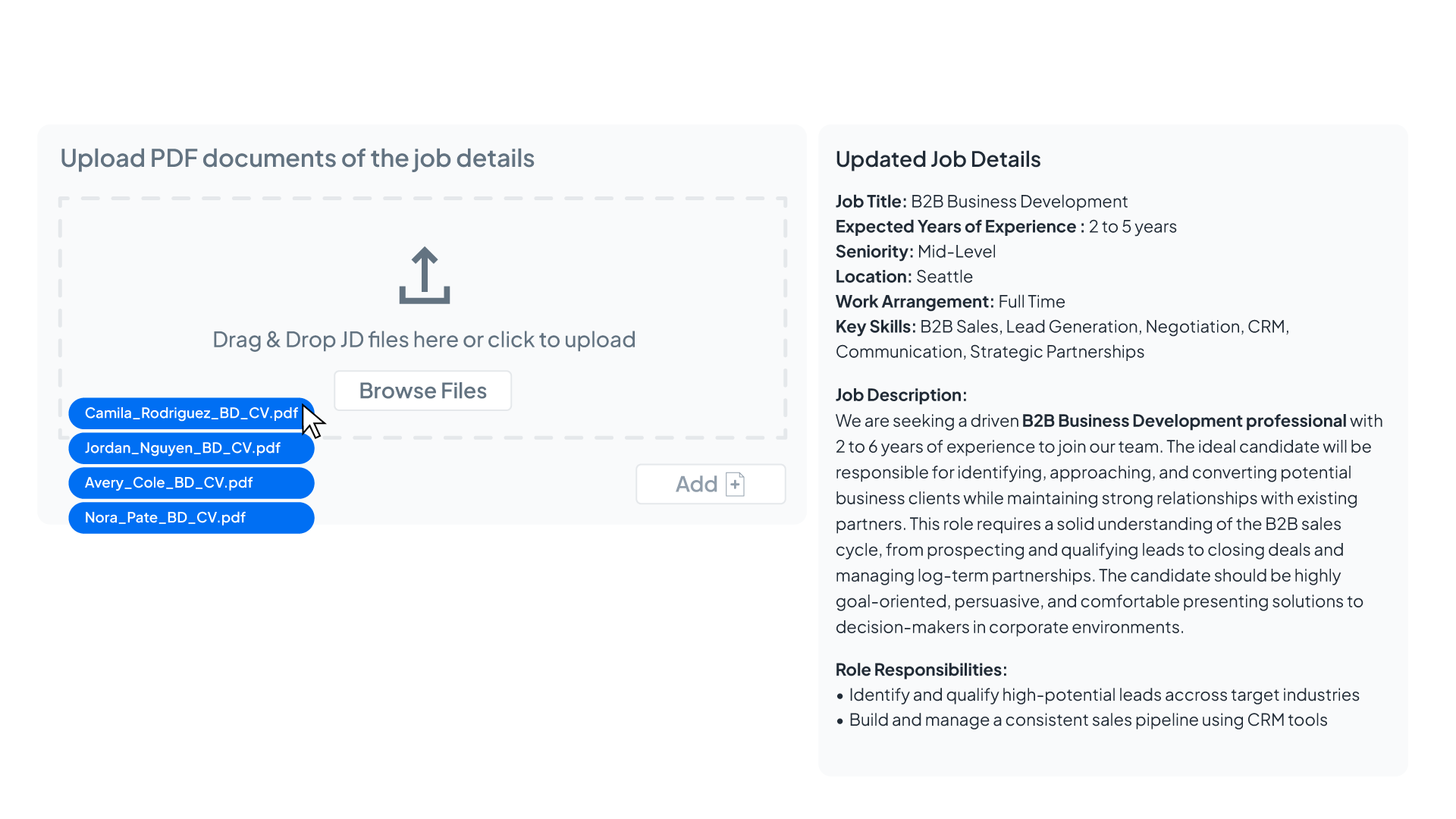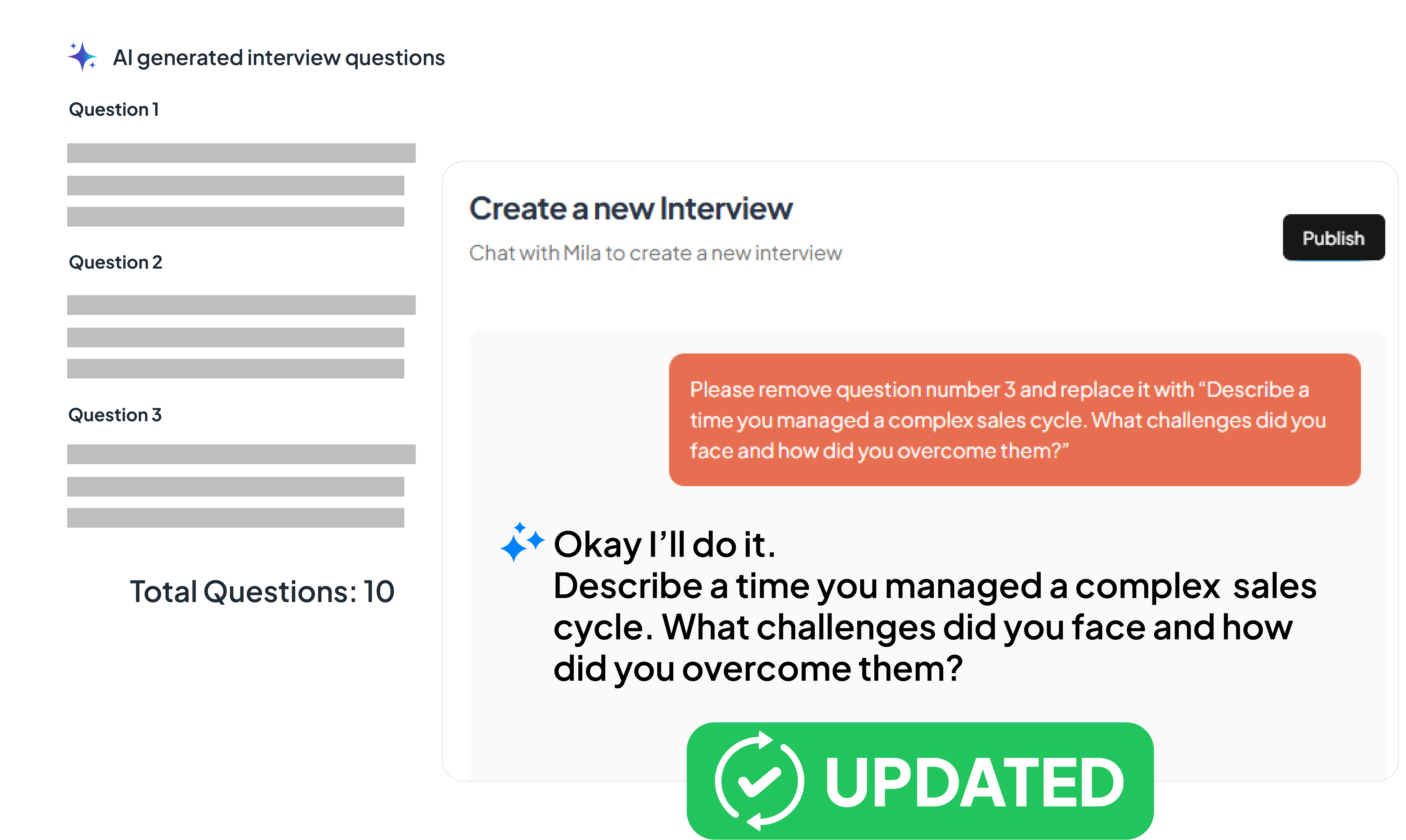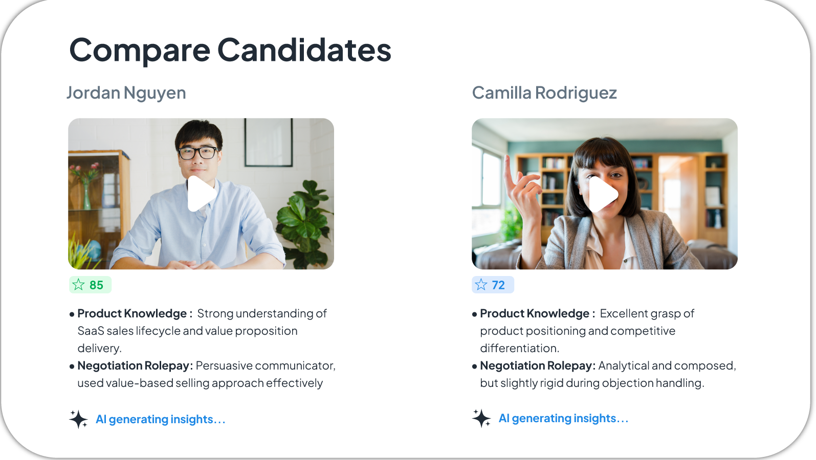 An AI video interview platform (also known as an asynchronous video interview) is a hiring solution where candidates record responses to pre-set questions, instead of meeting recruiters live. With KitaHQ, this process is enhanced through AI-based interview features, automated scheduling, and structured interviewing, helping businesses hire faster, fairer, and at scale.
